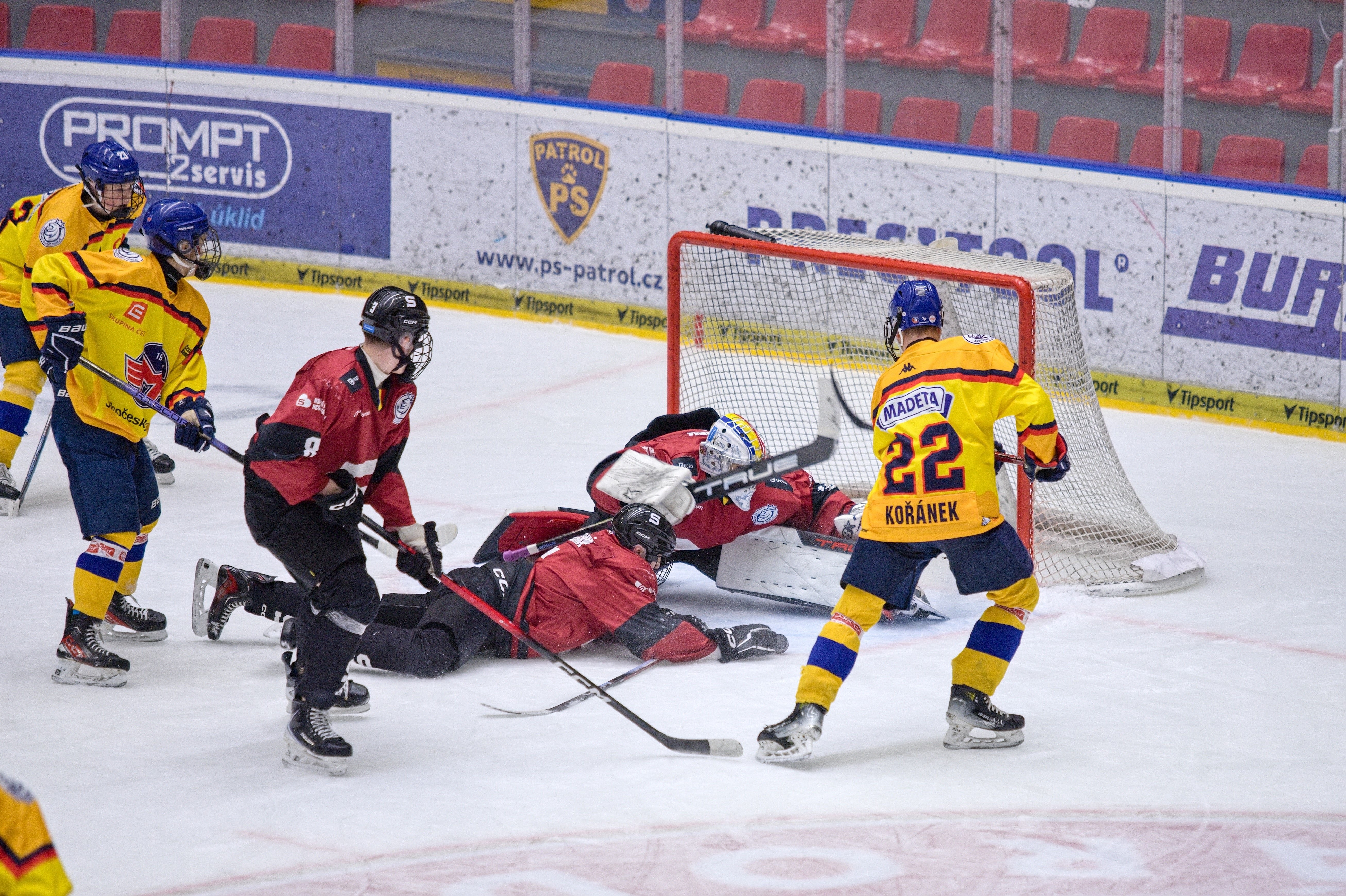 Mladší žáci B mají neskutečnou střeleckou fazónu. Po třech vstřelených osmnácti gólech v řadě tentokrát ještě více zabrali. V domácím utkání proti Soběslavi dokázali vsítit pětadvacet branek! Zejména třetí třetina byla hodně gólová. Motor ji vyhrál 14:0 a celkově utkání 25:3. Vladimír Pátý dokázal skórovat hned šestkrát, Jáchym Perfoll s Ondřejem Cimlem se trefili čtyřikrát.