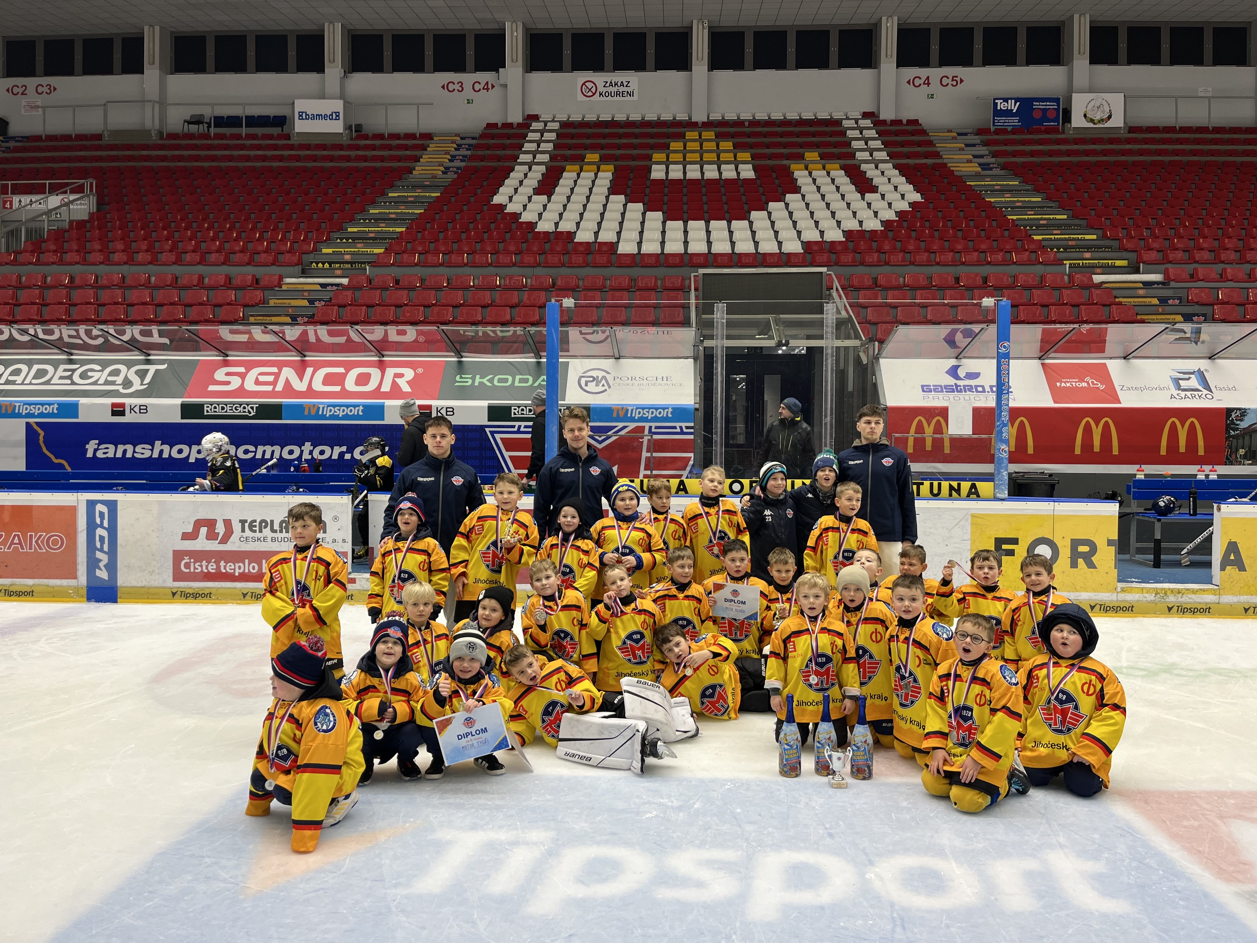 Celodenní turnaj v českobudějovické Budvar aréně kategorie do sedmi let se odehrál čtyři dny po Štědrém dnu. Motor byl rozlosován do dvou skupin - ve skupině A hráli žraloci, ve skupině B tygři a medvědi. Žraloci srdnatě bojovali o první příčku s Havlíčkovo Brodem a body ve dvojutkání si oba týmy rozdělily, nicméně remízový zápas s Plzní přiřkl Motoru až druhé místo ve skupině A. Nejlépe druhý skončil Motor i ve skupině B, kterou jasně ovládl Sokolov, který neprohrál jediné utkání. Naši medvědi tedy skončili druzí, třetí pak bílý tým Komety Brno a čtvrtí naši tygři.