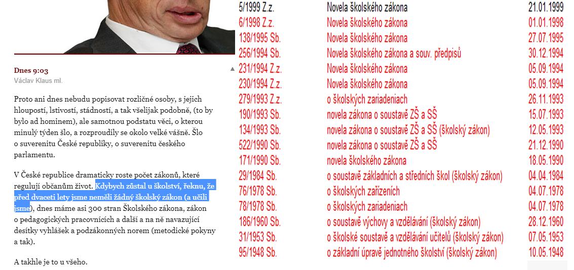 Myslel jsem si, že třeba aspoň školství rozumí, ale jak se ukázalo, jako ředitel školy zjevně ani netušil, že exituje školský zákon odkaz Inu, odporník...