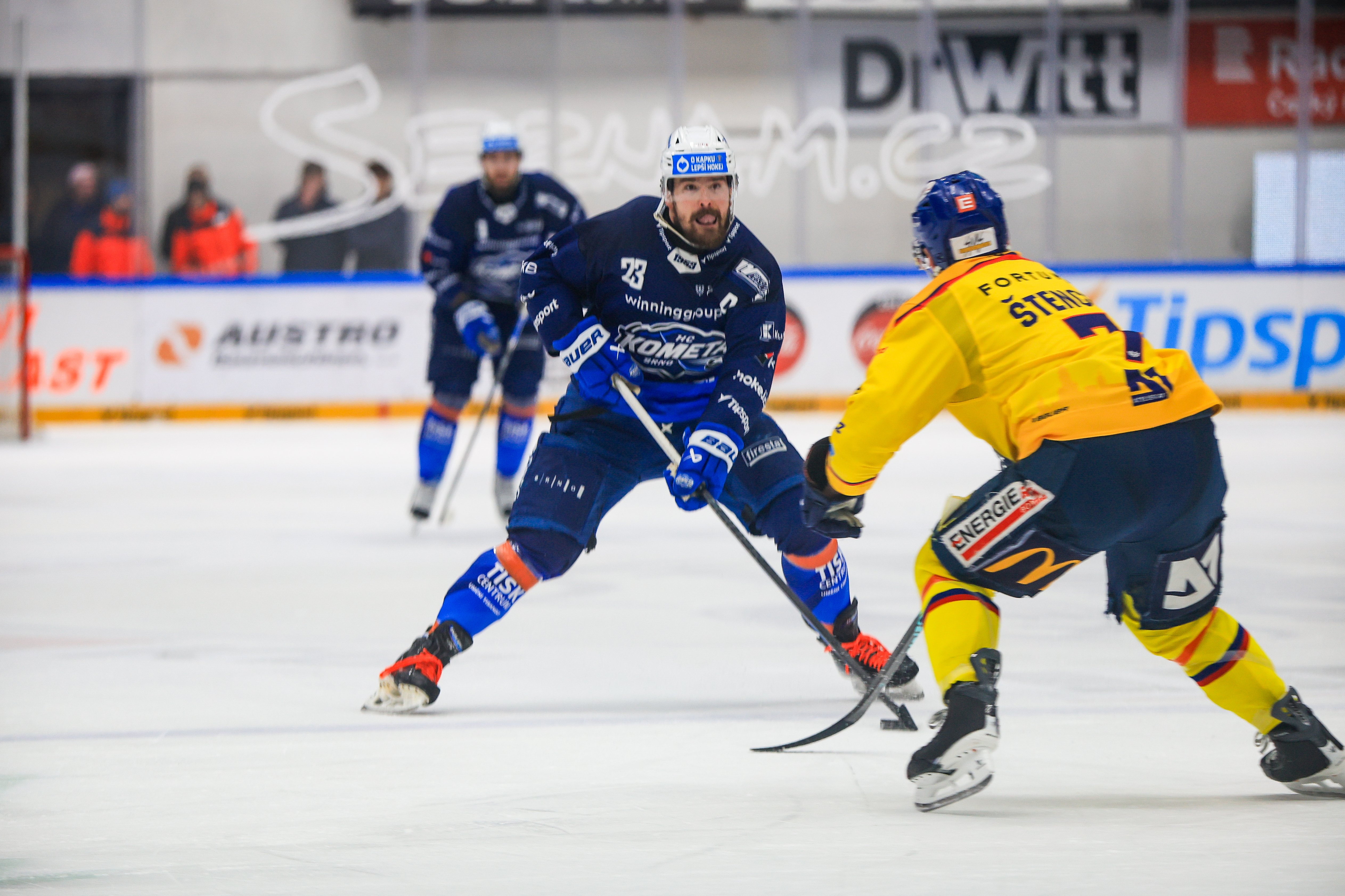 Dvě minuty a čtyřicet tři sekund trvající výhoda tři na čtyři pro domácí přinesla nejdříve dobrou střelu Fleka ze slotu, kterou vyrazil Klouček. Třicet sedm sekund před koncem výhody pak vystřelil z kruhu Andrej Kollár, jenž svou druhou brankou v zápase vystřelil Kometě bod navíc - 4:3. Jihočeši tak padli, z Brna vezou bod za prohru 3:4 v prodloužení.